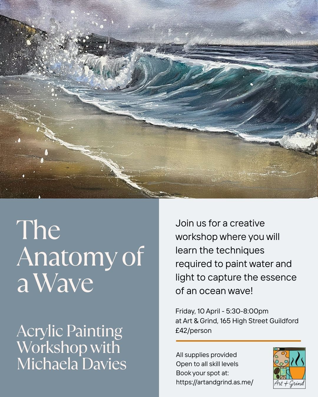 This acrylics painting workshop will focus on the techniques required to paint water, capture light and the beauty of the ocean wave. Local celebrated artist Michaela Davies will patiently guide you through the process! No experience required, all supplies will be provided.