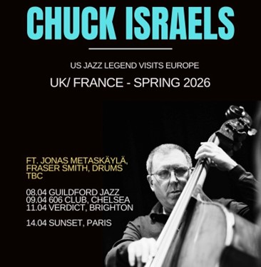 A rare European performance from the great American bassist Chuck Israels. Described by Humphrey Lyttelton as “a superb technician who handles the double bass as easily as if it were a guitar’, Chuck is best known for his work with the legendary Bill Evans Trio. He has also worked with such jazz luminaries as Billie Holiday, Coleman Hawkins, Stan Getz and John Coltrane. Chuck will be joined by tenor saxophonist Fraser Smith, guitarist Jonas Metsäkylä and drummer Steve Brown. From 20.00 to 22.15 (doors open 19.00) at the Guildford Pavilion, Woodbridge Rd, Guildford GU1 4RP For more details of the event and to book tickets £20 (Discounts for members and students) visit https://www.guildfordjazz.org.uk