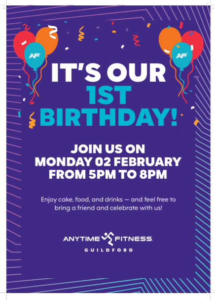 Join us on Monday 2nd February as Anytime Fitness celebrates its 1st birthday! 🎉
